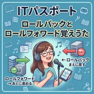 ITパスポート試験で頻出の「ロールバック」と「ロールフォワード」の違いを歌で楽しく暗記!AI作成の楽曲「ロールバックとロールフォワード覚えうた」を聴いて、間違えやすい障害回復のキーワードをマスターしましょう。初心者向けの分かりやすい用語解説付きです!