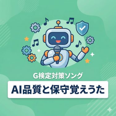 G検定で間違えやすい「AIの品質保証」と「保守契約」の違いを、音楽のリズムで楽しく覚えられるオリジナル曲「AI品質と保守覚えうた」をご紹介します。試験で押さえるべき定義やポイントを歌詞の解説とともに分かりやすくまとめました。日々の学習のBGMにご活用ください。