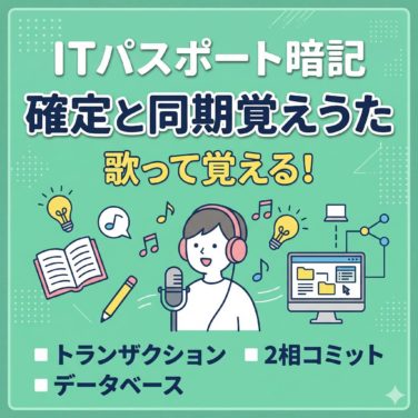 ITパスポート試験で間違えやすい「トランザクション」「2相コミット」「ロールフォワード」などの用語を、オリジナル曲「確定と同期覚えうた」で楽しく暗記!AIを活用した学習ソングと初学者向けの分かりやすい用語解説で、データベース分野を確実に得点源にしましょう。