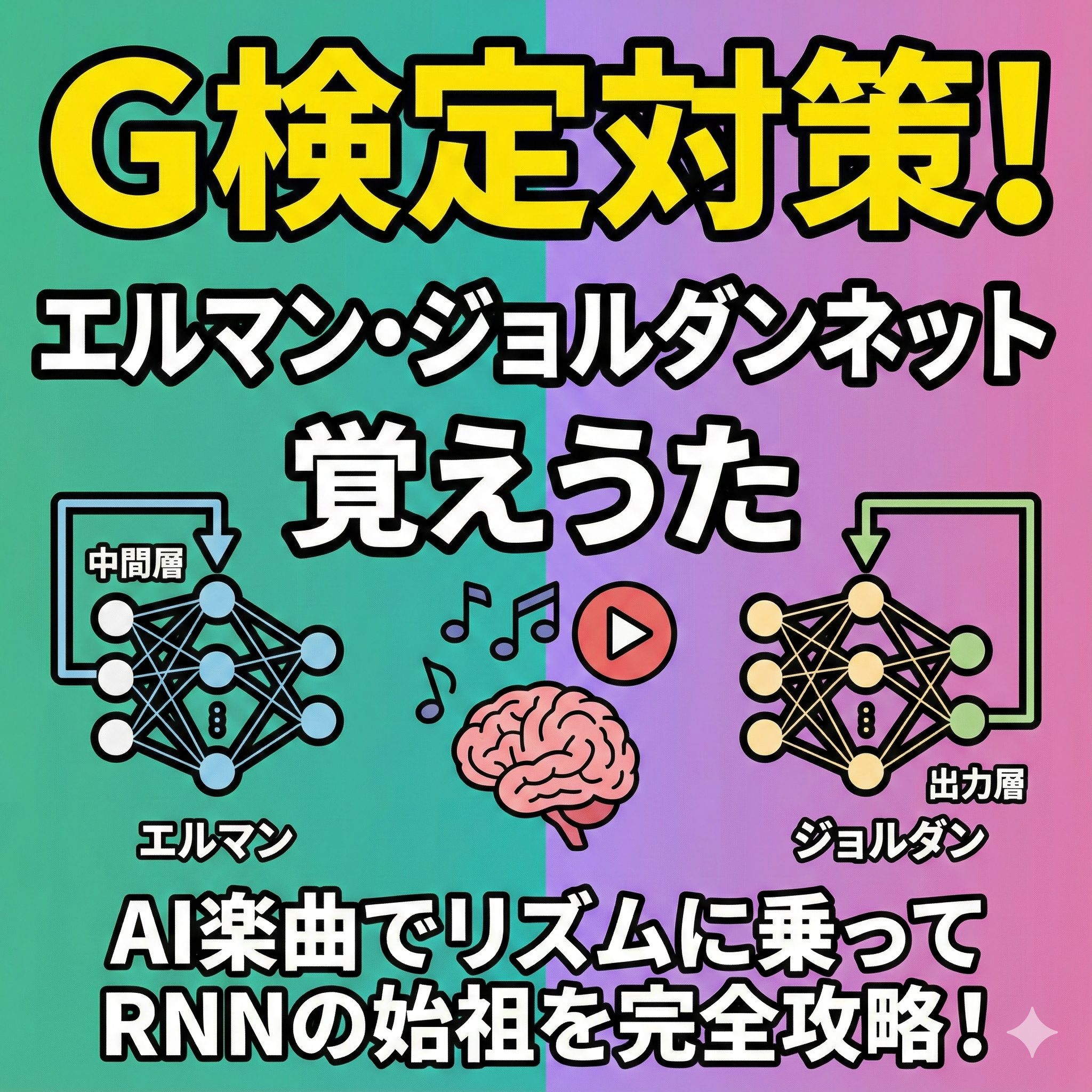AI 【G検定対策】AI楽曲で覚える!「エルマン・ジョルダンネット覚えうた」でRNNの始祖を攻略せよ